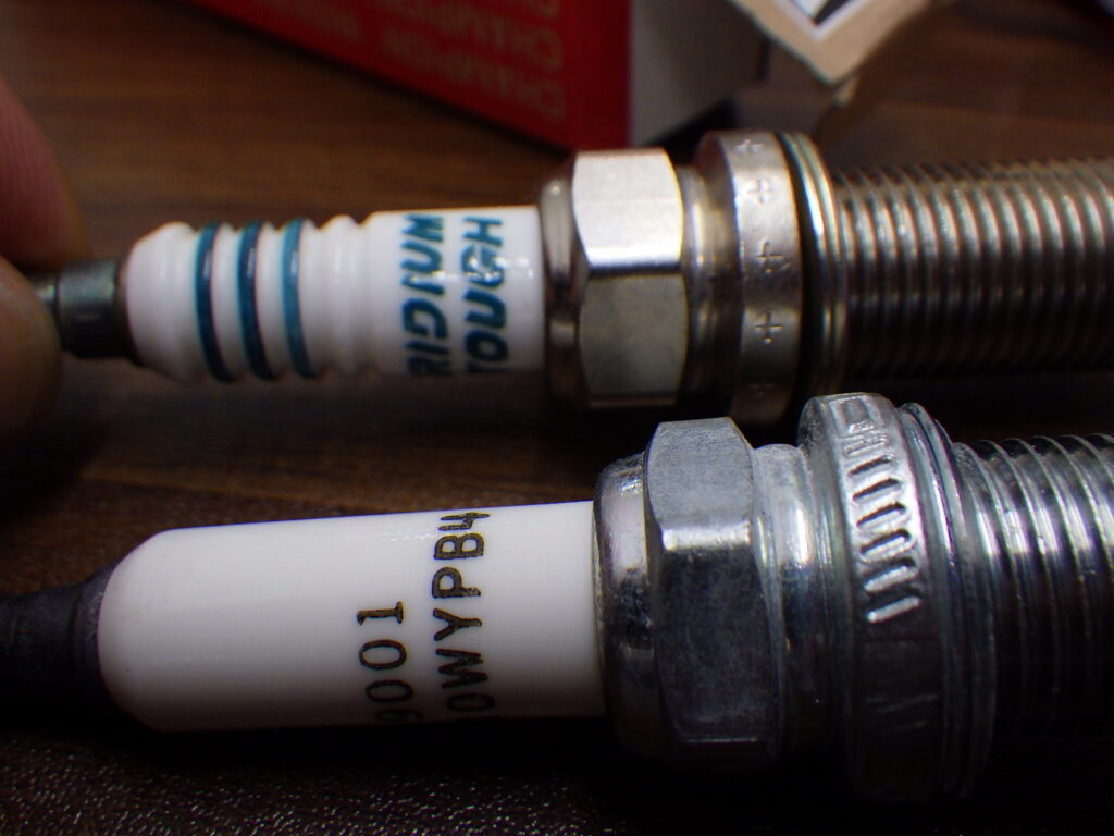 原因はI/Gコイルでした。スパープラグも交換すると、Champion製プラグが使われていました。 おそらく新車装着だと思います。