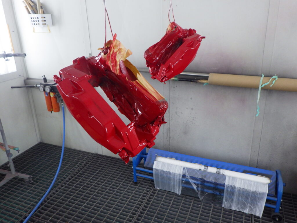 そして赤で塗装。一口に赤と言っても、単色で塗る物でもないので、データを探しました。