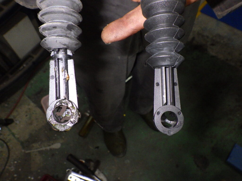 分かりにくいですが、傷んで穴が僅かに大きくなったマスターシリンダー。全てプラスチックでできています