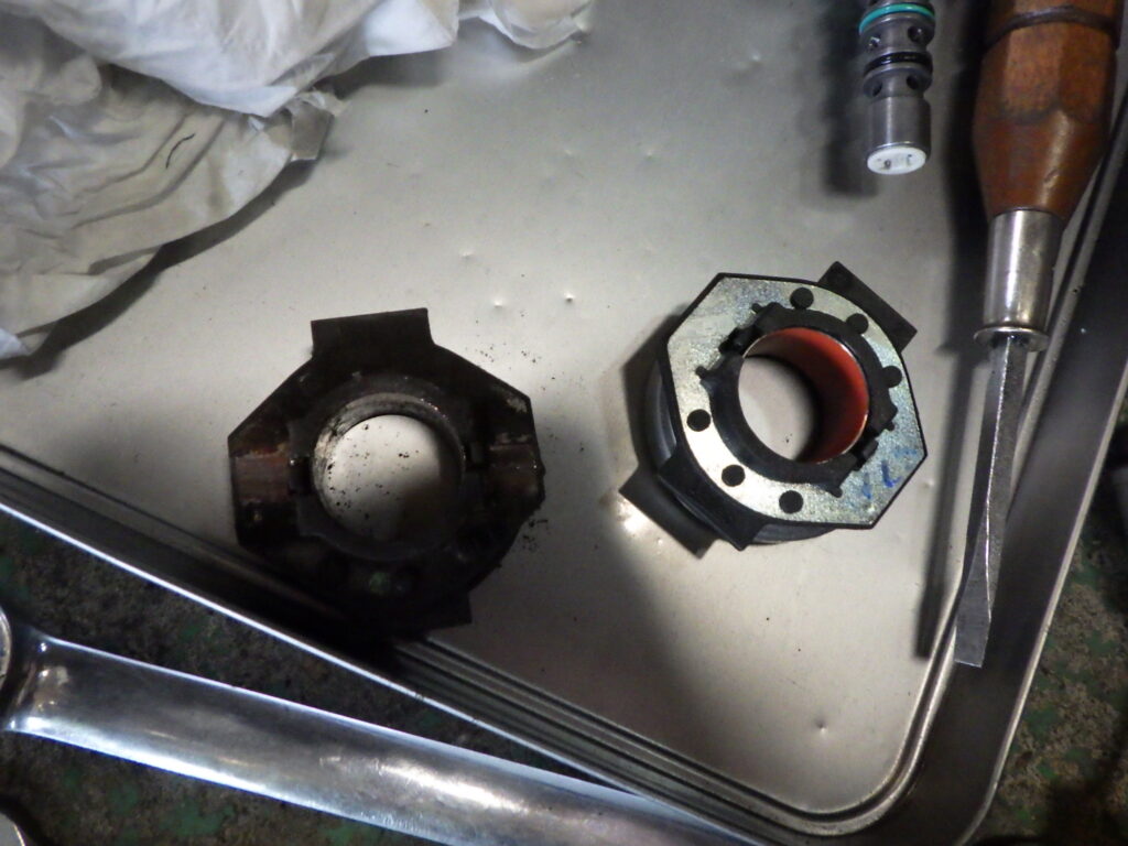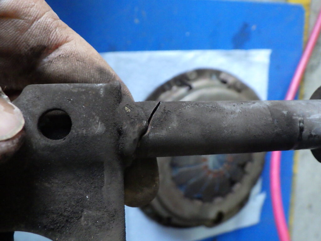 このひびがクラッチカバーにベアリングを押し付けようとしても、亀裂が開いてしまい圧着力が足らなくなって、ギアチェンジできず、不動ななったのです。