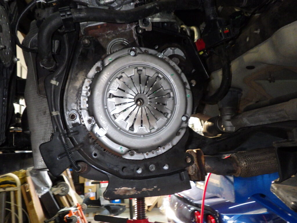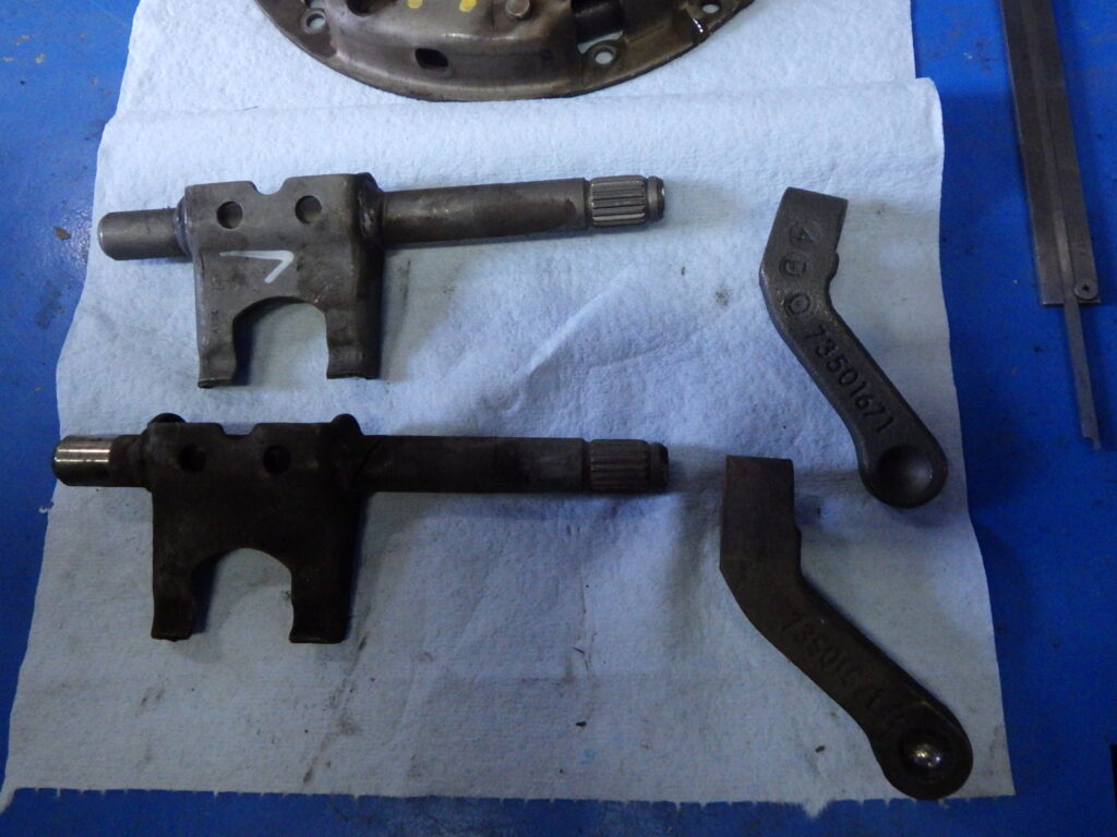 クラッチレリーズベアリングをクラッチカバーに押し付ける部品です。レバーが上に付いていて、油圧ユニットのピストンがレバーを押してベアリングがクラッチカバーを押して、動力が遮断されてギアチェンジができる訳です。