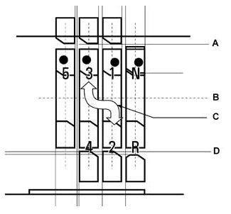つまり縦軸側がこちらは1-2速の位置で入れたつもりにも関わらず、ひとつズレてしまうとRのレーンに入ってしまうのです。