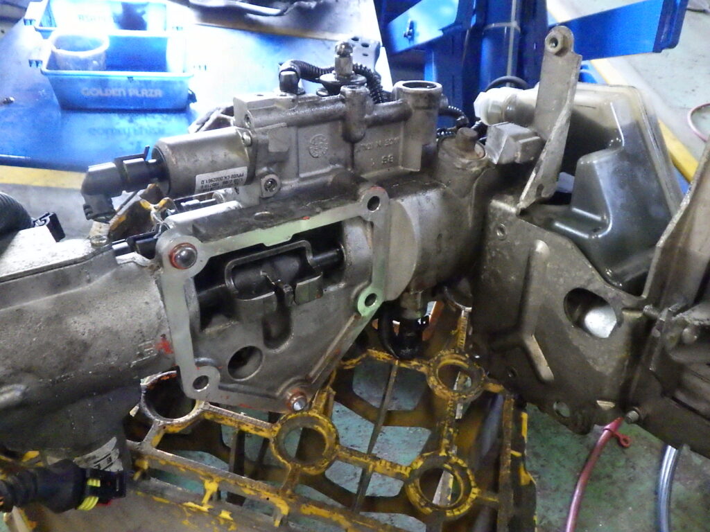 トランスミッションにアクチュエーターユニットを載せて、あれこれ組付けます。