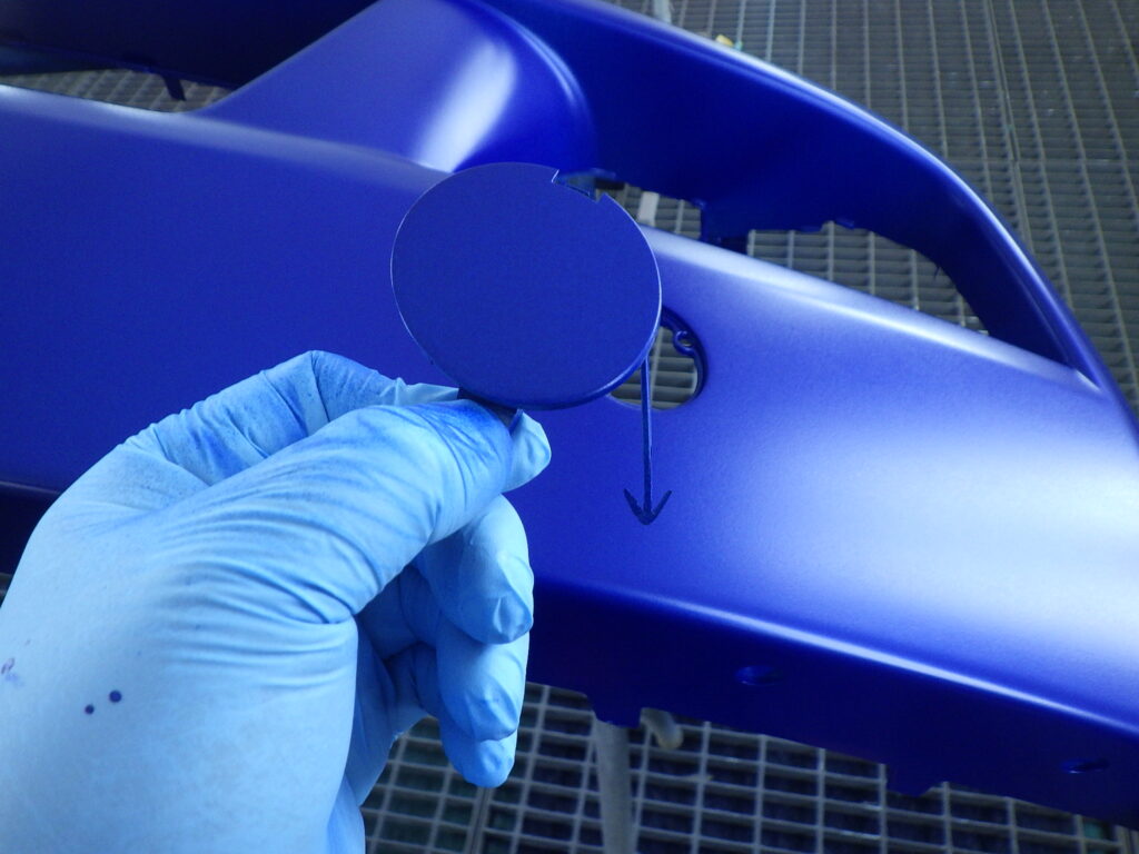 乾いた事を見計らってバンパーにトーイングフックカバーを戻します。こんなの開けない前提です