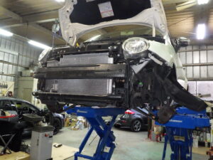 クラッチ交換を作業しているフィアット500