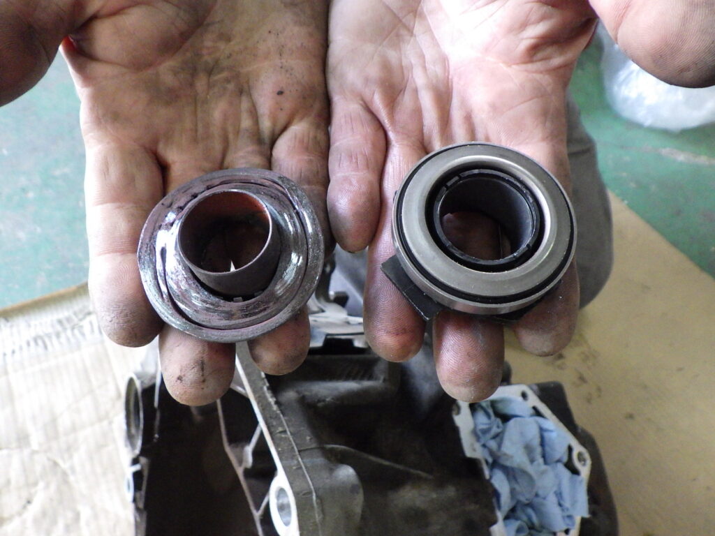 このレリーズベアリングはクラッチを押してフライホイールからクラッチプレートを離す役割を持つ大事な部品です。