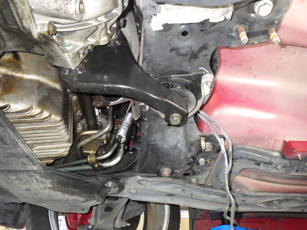 さらにチェンジロッドを狭い所を通してエンジンルーム内に入れるのですが….