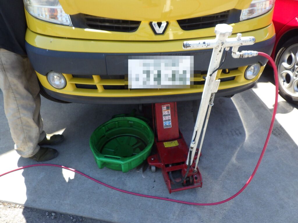 典型的なパワステフルード不足のようで、すぐに来てもらってフルードを足すと約1L近く入りました。