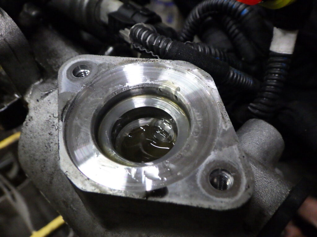 縦軸ソレノイドの取り付け部分はとっぷりオイルでふさがっています