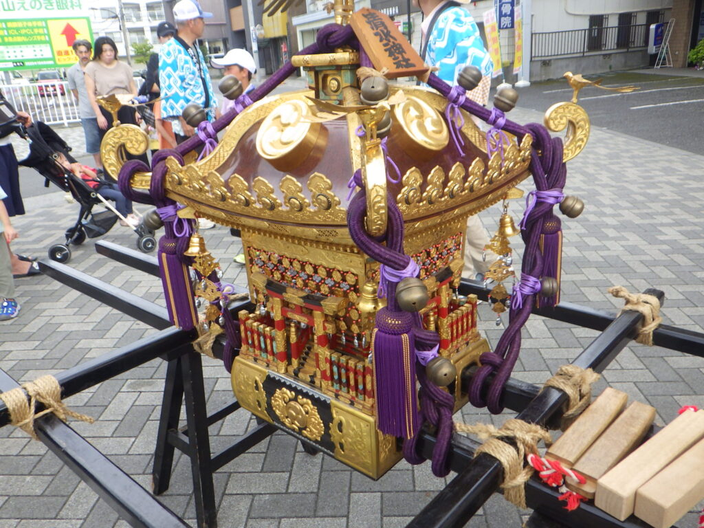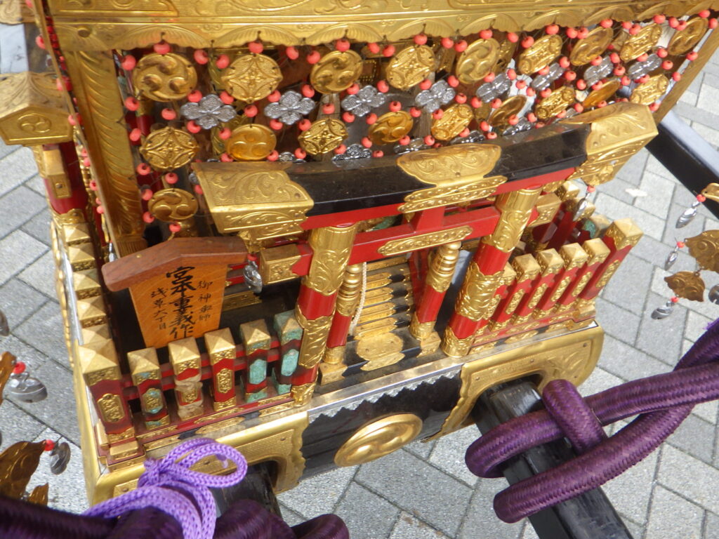 お神輿の飾りの一部がへっこんでいるの、実は僕がハンマでひっぱたいて….