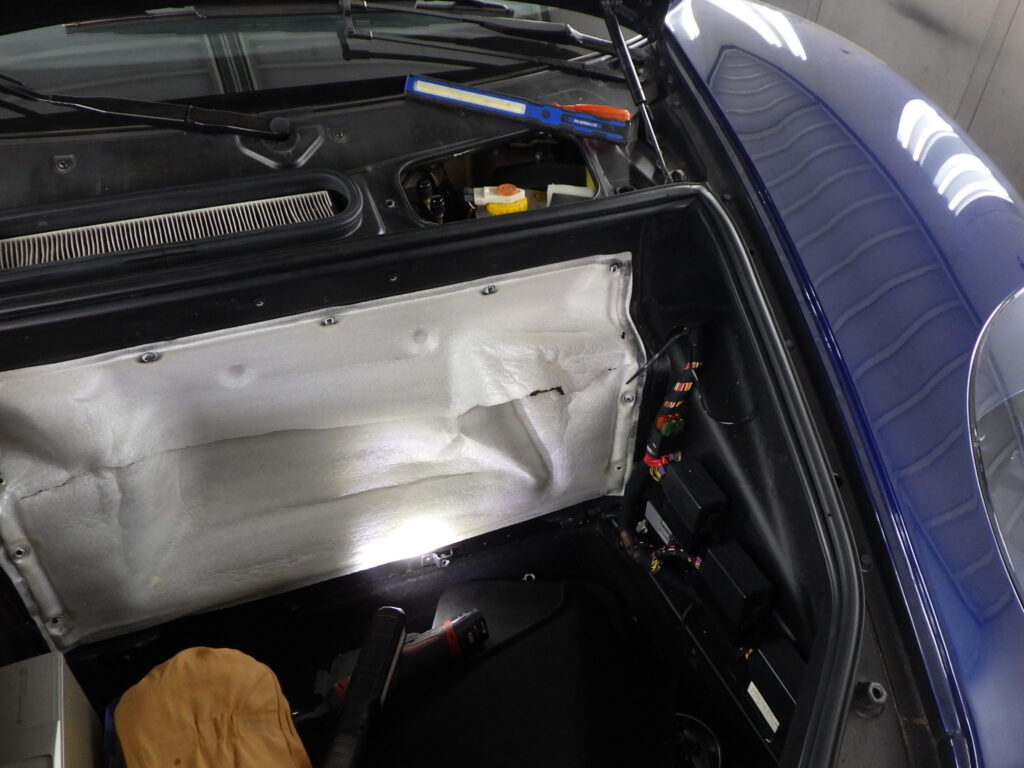 そして見つけたのはこここのトランクからアクセスする言うところの機械室みたいな配管やステアリングシャフトなどが通る部分です