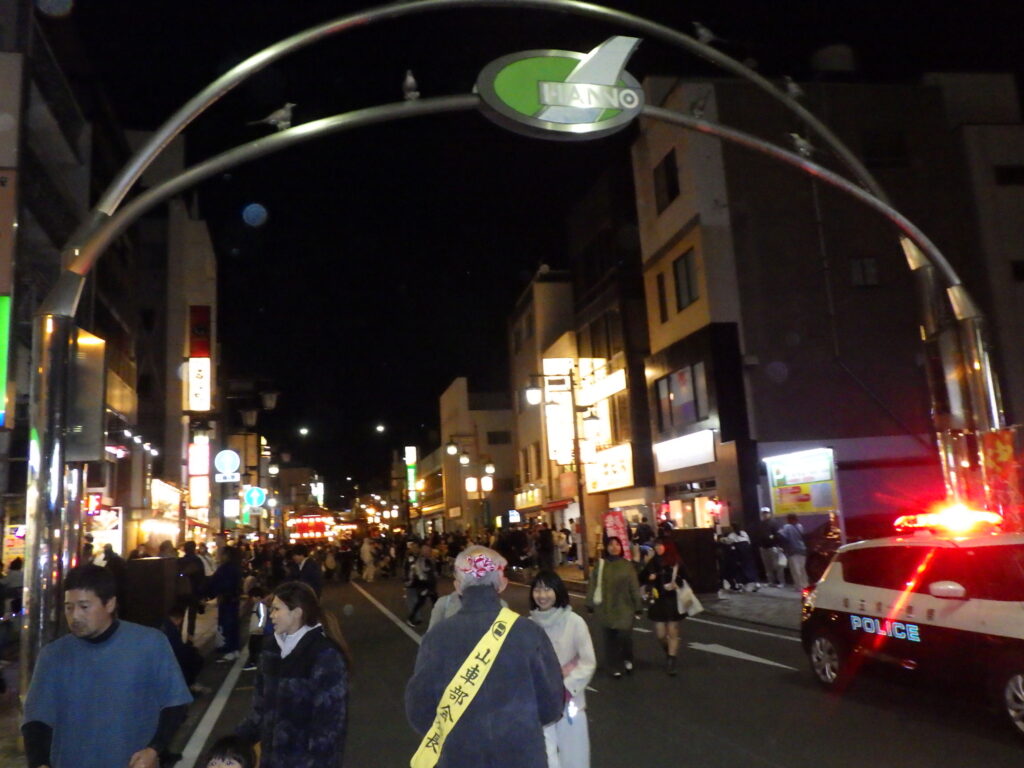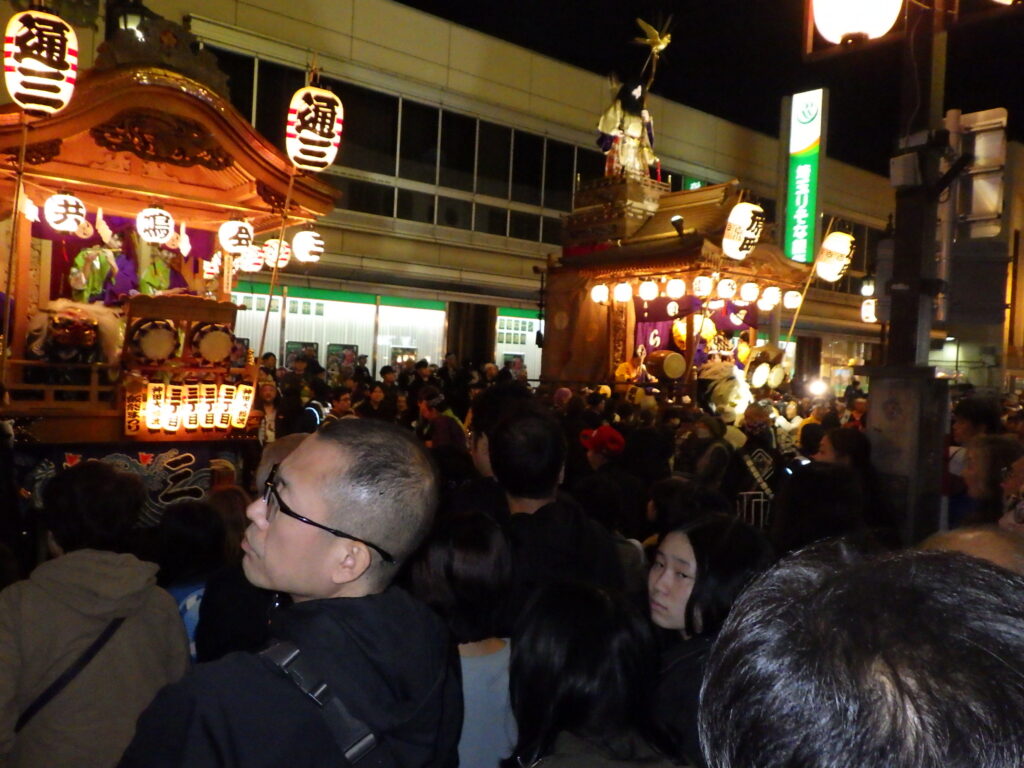 飯能まつりの最大の見せ場の、各町内の山車が横一列になってお囃子を共演する引き合わせは午後7時半からなので