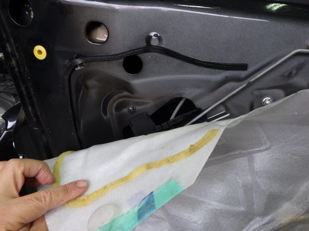 ウオータープルーフシールをより活性化させるために、ブチルテープを全周に渡らせます。